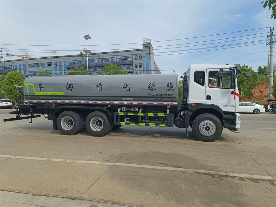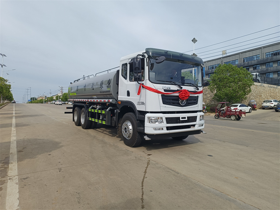 東風(fēng)20噸灑水車產(chǎn)品標(biāo)配前噴(鴨嘴)、后沖、后灑、側(cè)噴、后置式工作 平臺(tái),平臺(tái)上配置綠化水炮(可 360°旋轉(zhuǎn),既可以調(diào)成柱狀,也可 以調(diào)成霧狀,更可以調(diào)成直沖狀、大雨、中雨、小雨、毛毛雨),配 備優(yōu)質(zhì)大功率專用灑水泵(可自吸自排,可從河里或池塘抽水到罐體), 取力器,雜物過濾網(wǎng),消防接口,自流球閥系統(tǒng)、取力器、球閥、濾網(wǎng) 均為國家標(biāo)準(zhǔn)產(chǎn)品,主管道加粗,法蘭墊、法蘭盤加厚,大通徑球閥。 整體具備性能優(yōu)良安全可靠、效率高、流量大、維修方便等特點(diǎn)