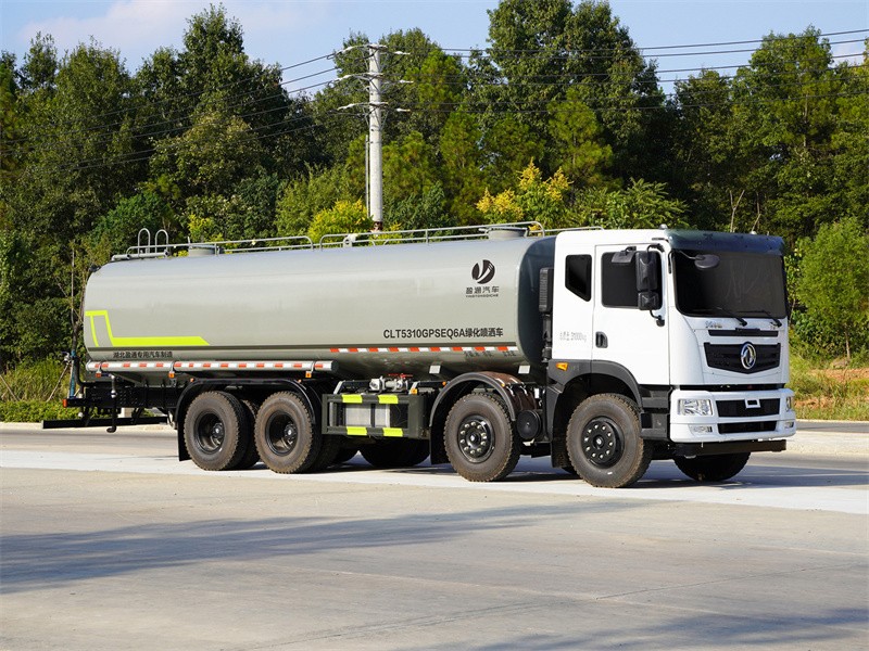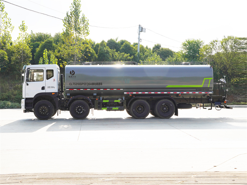 東風28-30噸灑水車該車主要用于城鄉園林綠化噴灑;主要裝置為罐體及噴灑裝置:罐體總容量:20.1立方米;罐體有效容積:19.14立方米;罐體外形尺寸(長×長軸×短軸)(mm):7300×2450×1650;側、后防護材料均為:Q235碳鋼,連接方式均為:螺栓連接,后部防護截面尺寸(mm):120×50,后部防護離地高度(mm):490;ABS的型號及生產廠家:3631010-C2000/東科克諾爾商用車制動系統(十堰)有限公司,J ABS/焦作博瑞克控制技術有限公司.隨底盤選裝駕駛室,選裝噴霧裝置樣式,選裝箭頭指示燈裝置,選裝自動球閥安裝位置,選裝水炮支架位置,選裝擋泥板樣式,采用軸距(mm):1850+3200+1350改裝.隨底盤選裝空濾尿素罐/電瓶框位置布局,選裝不帶高位花灑裝置.選裝罐體頂部高位花灑裝置,選裝罐體頂部方形罐口及罐口位置,選裝工具箱,選裝箭頭燈裝置,選裝車輛前部鴨嘴裝置,選裝尾部自流口裝置,選裝電子炮裝置樣式,安裝電子炮時整車長度為11150mm,11550mm,前伸為500mm.后部作業燈僅在作業時開啟,車輛行駛過程中不可開啟.